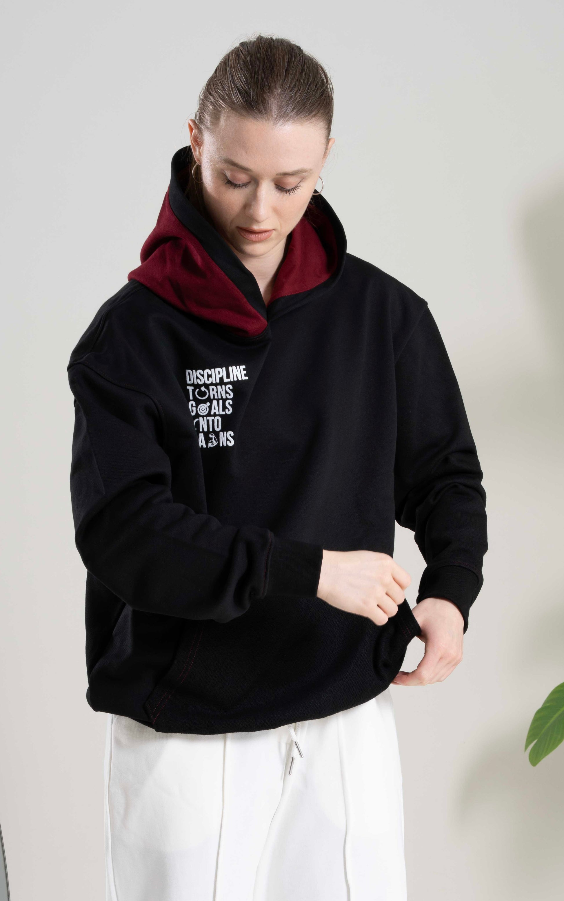 Made from 100% organic cotton, this unisex hoodie blends softness, style, and motivation. With a relaxed fit and elastic details, it’s built for movement and comfort. Featuring "Discipline turns goals into gains" as a daily reminder—because greatness starts with Discipline.